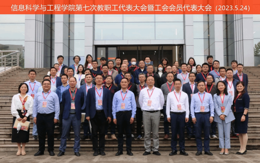 信息科学与工程学院第七届分工会委员会:主席杜呈透、副主席胡迪(兼任女工及青工委员)和杨旭、宣传委员赵鑫、体育委员兼文艺委员邹杰、组织委员许高明、福利委员江先亮。