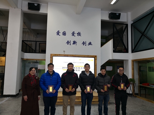 对老师们一年以来辛苦的付出表示由衷的感谢;紧接着,屠春飞副书记为获得本年度校级优秀班主任称号的郑雁公、张晓伟、张跃军、江先亮、赵鑫五位老师颁发荣誉证书,表彰他们在班主任工作上的突出表现;随后,各辅导员分别对本年度相关工作了做了总结汇报,并对近期相关工作了沟通说明。