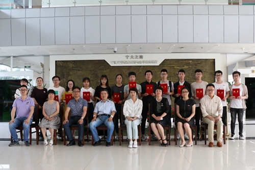 校发展联络处处长助理张海华老师宣读了第二届“海天助学金”获得者名单,全体与会领导嘉宾共同为12名获资助学生颁发证书。亚洲色吧