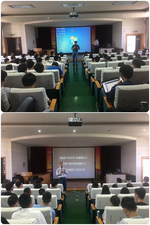 签约实习基地,海天集团人力资源经理张程斐代表公司做了2019届实习生招聘宣讲。张经理从“为什么要开展专业实习”、“选择海天的理由”以及“海天集团和暑期实习项目”三个方面做了介绍。