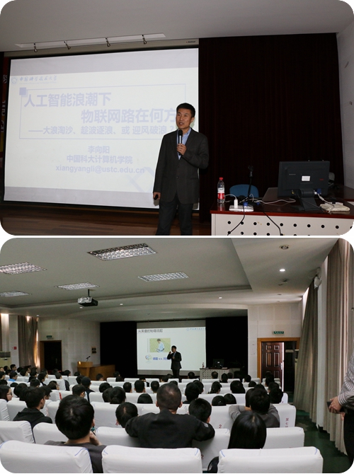 在报告中,李向阳教授将结合人工智能,以基于RFID的无源感知和最新的无源无线网络方面的发现为例,与大家分享物联网的前沿研究成果和未来面临的研究挑战,尤其是如何实现隐藏式数据感知、无源数据传输、以及智能化的数据处理。报告深入浅出,让在座的师生受益匪浅。