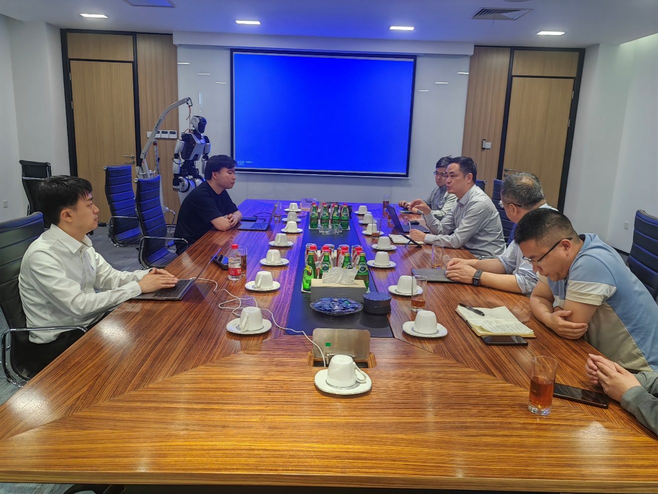 基本情况,就与均胜电子校企合作相关事宜进行了深入交流。沈祥院长提出聚焦人形机器人研究,发挥双方优势,建立校企联合实验室,以联合实验室为载体,在项目合作、青年教师发展、本科生与研究生联合培养等方面深度合作,促进学生留甬发展与产学研落地。