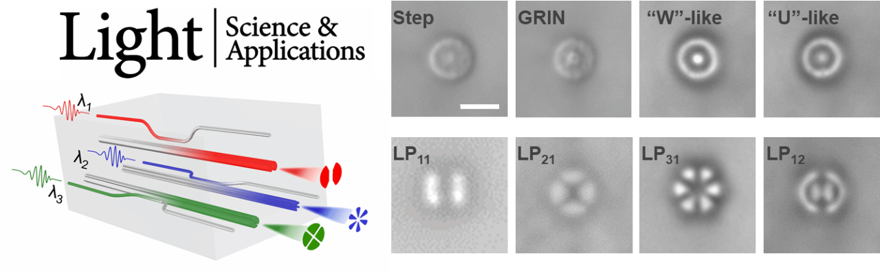 近日,亚洲色吧 Light+X团队钟理京博士和浙江大学邱建荣教授等在3D光子芯片的飞秒激光制造领域取得系列重要进展。论文以第一作者/通讯作者身份发表分别在光学领域顶尖期刊 Light: Science & Applications和材料学领域顶尖期刊 Advanced Materials上。飞秒激光直写技术是一种同时具备三维(3D)加工能力和纳米精度的快速制造技术,被广泛应用于精密工业加工和前沿科学研究。然而,无论是基于传统的平面光刻技术还是当前的飞秒激光直写技术,对波导折射率分布的精细控制仍然遥不可及。针对这一长期存在的光学工程难题,钟理京等在飞秒激光制造渐变折射率和任意可变截面的3D光子光路上取得重要突破:研究团队通过开发一种精细的飞秒激光直写方法,提供了一种在3D集成光子光路中实现超宽带、低色散耦合的有效途径,与传统的平面光波导器件相比,在片上传输和操纵强非线性激光脉冲方面展现出压倒性的优势,使其成为构建下一代复合集成3D光子光路的有力工具。该研究成果以“Precise mode control of laser-written waveguides for broadband, low-dispersion 3D integrated optics”为题,于2024年6月4日在线发表在光学领域顶尖期刊 Light: Science & Applications上。钟理京博士为第一通讯作者和共同第一作者,邱建荣教授为最后通讯作者。此外,Light+X团队还与之江实验室、华南理工大学和意大利比萨大学等研究人员合作,采用飞秒激光直写技术,在包括YAG、LuAG、LiNbO3等稀土掺杂或不掺杂的多种单晶晶体中,开发出一系列低损耗、可变截面的无源和有源光波导集成器件。该研究成果以“3D Laser Writing of Low-Loss Cross-Section-Variable Type-I Optical Waveguide Passive/Active Integrated Devices in Single Crystals”为题,于2024年5月8日在线发表在材料学领域顶尖期刊 Advanced Materials上。钟理京博士为共同通讯作者,邱建荣教授为最后通讯作者。