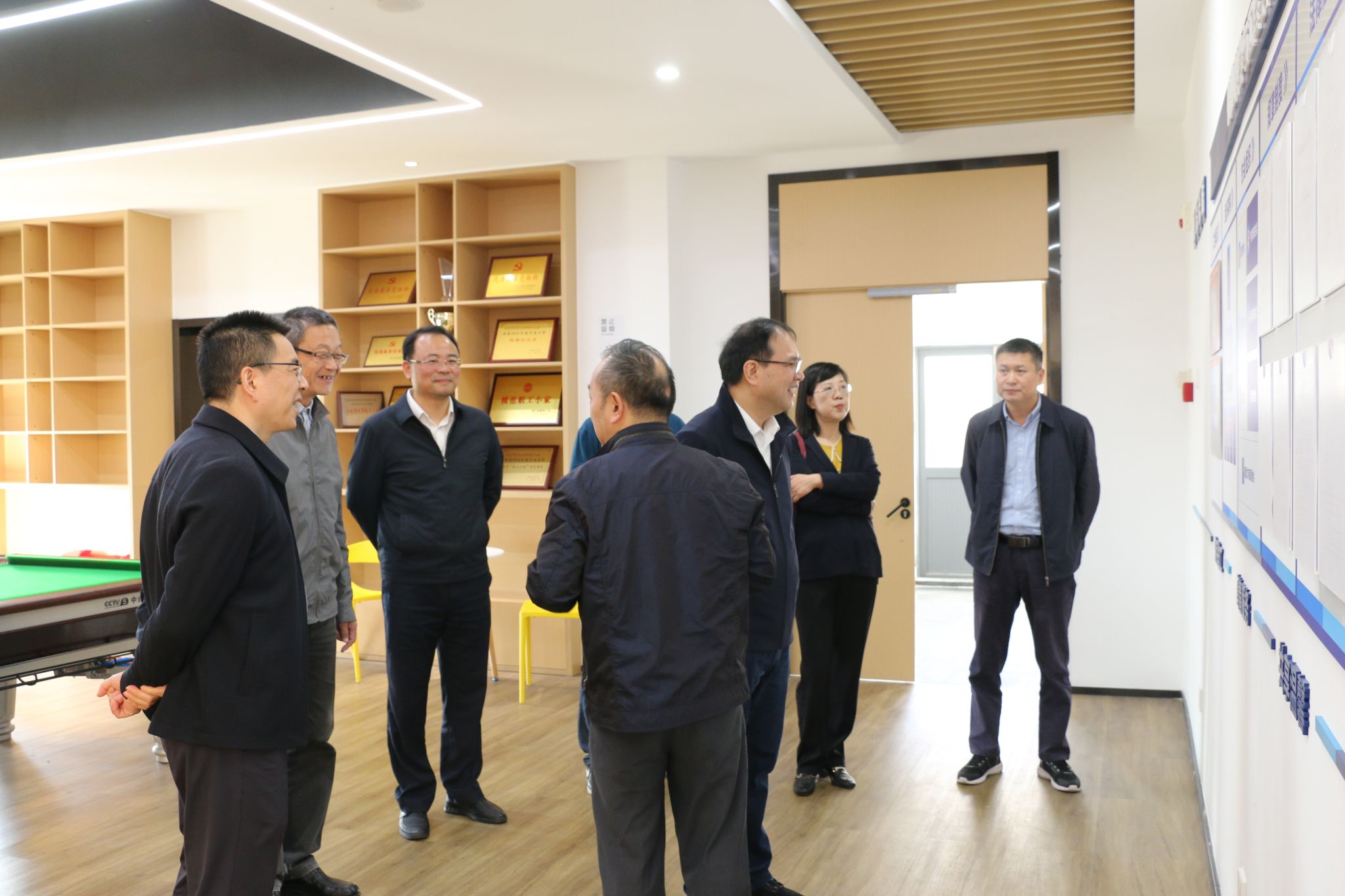 教工小家,参观了小家母婴室、乒乓球室、阅读区、舞蹈房等多个教工活动功能区。听取了亚洲色吧