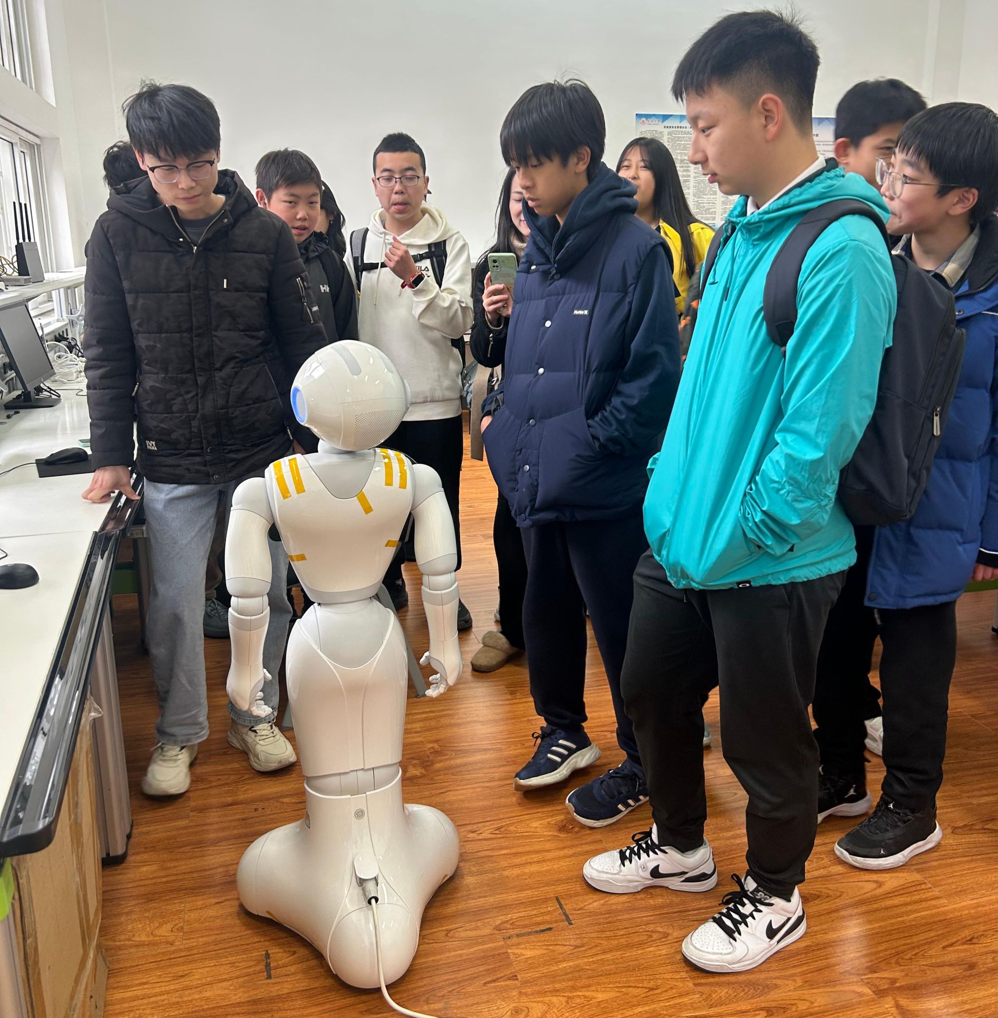 在人形机器人实验室,人形机器人的精彩表演让同学们大开眼界,它们不仅能够语音介绍亚洲色吧