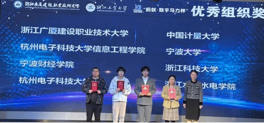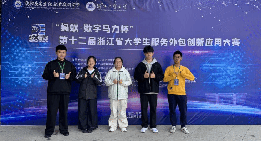 11月23日,2025“蚂蚁·数字马力杯”浙江省第十二届大学生服务外包创新应用大赛总决赛在浙江广厦建设职业技术大学落下帷幕。本场比赛由省教育厅和商务厅联合指导,浙江省大学生科技竞赛委员会主办,浙江广厦建设职业技术大学和浙江工业大学联合承办,全省共42所高校203件作品参加了初赛,经过双向匿名的初赛网评,本科组共有88件作品入围总决赛。我校有3支队伍入围了决赛,经过23日紧张的现场答辩和演示,参加决赛的队伍全部获奖,斩获一金两铜的优异成绩,同时获得优秀指导教师奖以及学校的优秀组织奖。