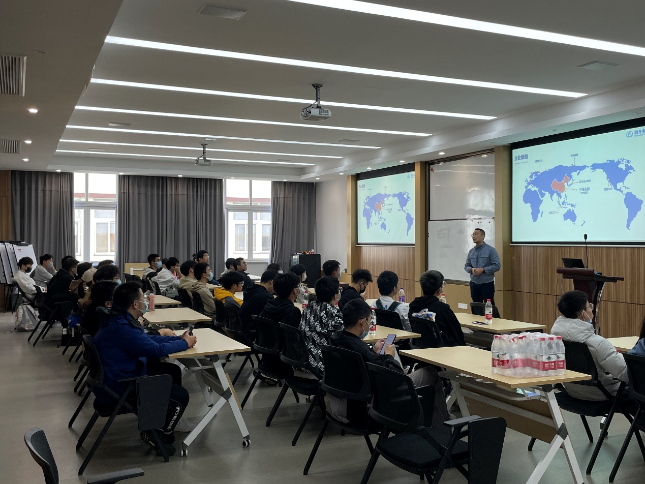 就业办汪小静、学工办严炜韬带领30余名信息学子前往宁波韵升股份有限公司与校友深入交谈,进一步加深同学们对就业形势的了解和对企业招聘的认识。