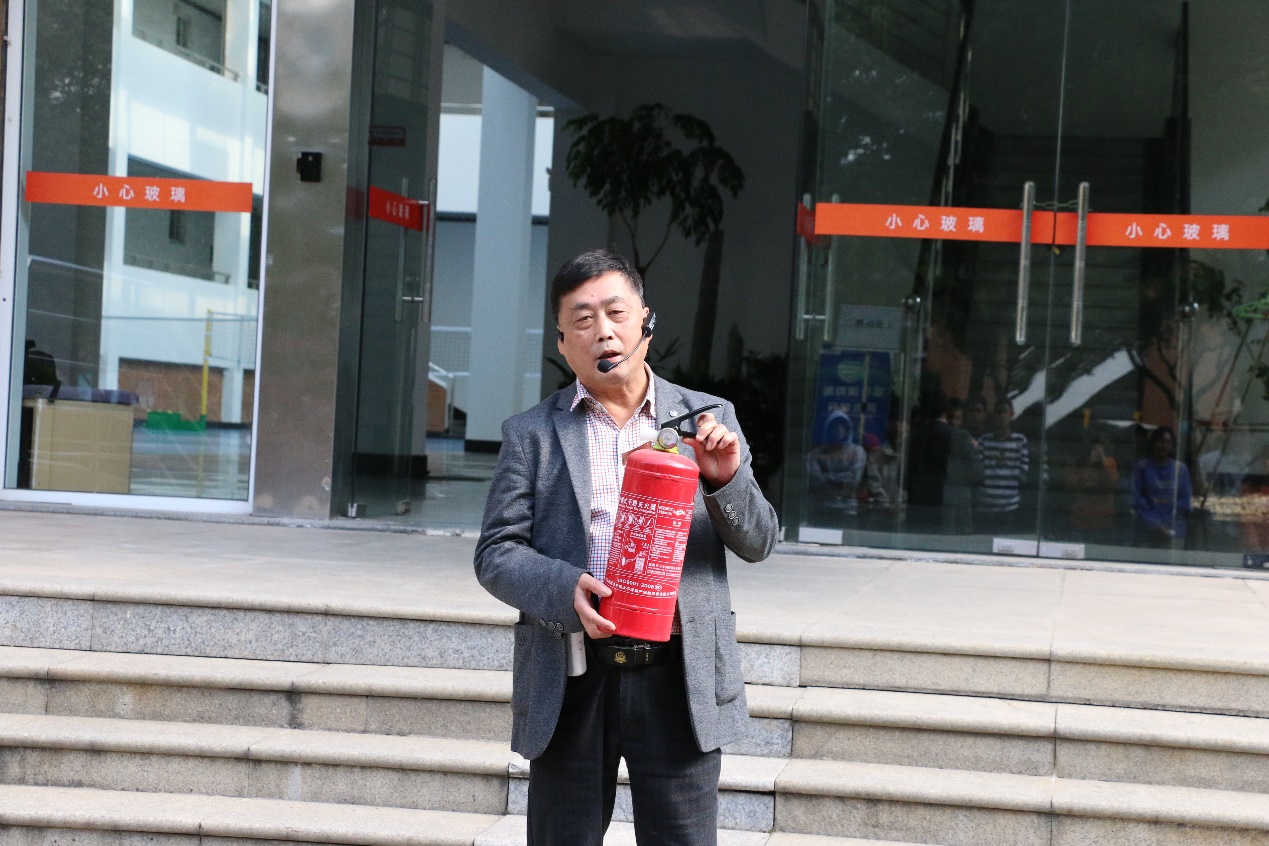 演练前,首先由保卫处干部徐老师具体为学生讲解了逃生知识和技巧,从灭火器的类型、灭火器的操作方法、灭火器操作注意事项等进行了详细的讲解。实战演练时,师生员工和学生代表面对熊熊大火,拿起灭火器按照讲述的操作要领详细认真的进行灭火练习,人人做到动作到位,成功灭火。