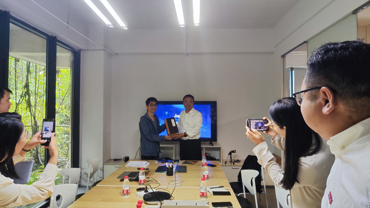 党委书记王伦耀就今年学校的毕业生及相应就业情况向公司进行介绍,随后企业与在场10名未就业毕业生进行深入交流,并参观菊风企业的文化及布局。