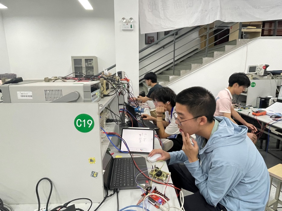 大二大三的学生,他们经过专业课程学习和一个月的选拔培训,根据培训项目的完成情况和理论测试成绩选拔进入,冒着酷暑,在北区忻元甫楼的大学生电子设计创新基地中参加一个月的暑期强化训练,经历作品制作及测评、综合测评、全国复测层层筛选获得佳绩。