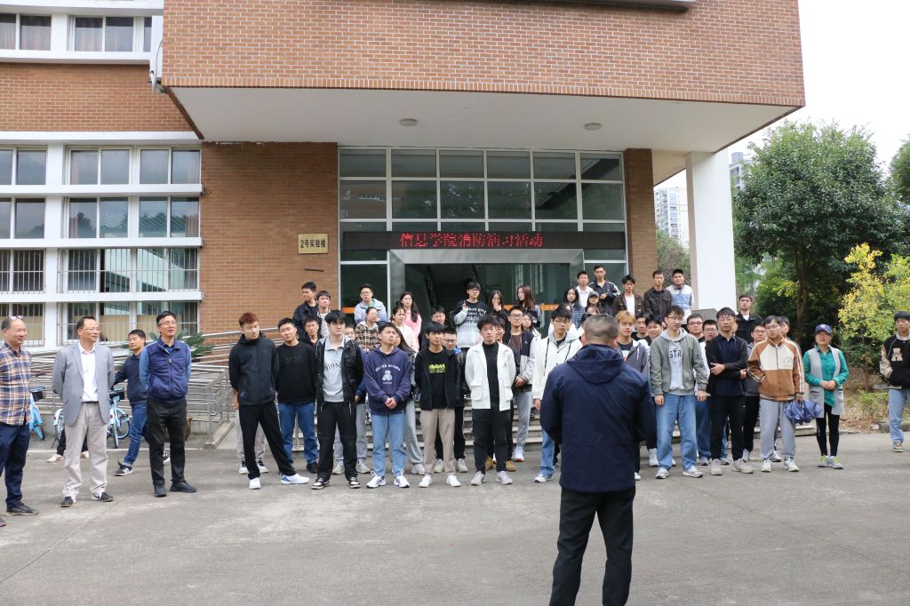 演练前,首先由保卫处干部郑老师具体为学生讲解了逃生知识和技巧,尤其对灭火器的操作方法和灭火毯的使用进行了现场演示。
