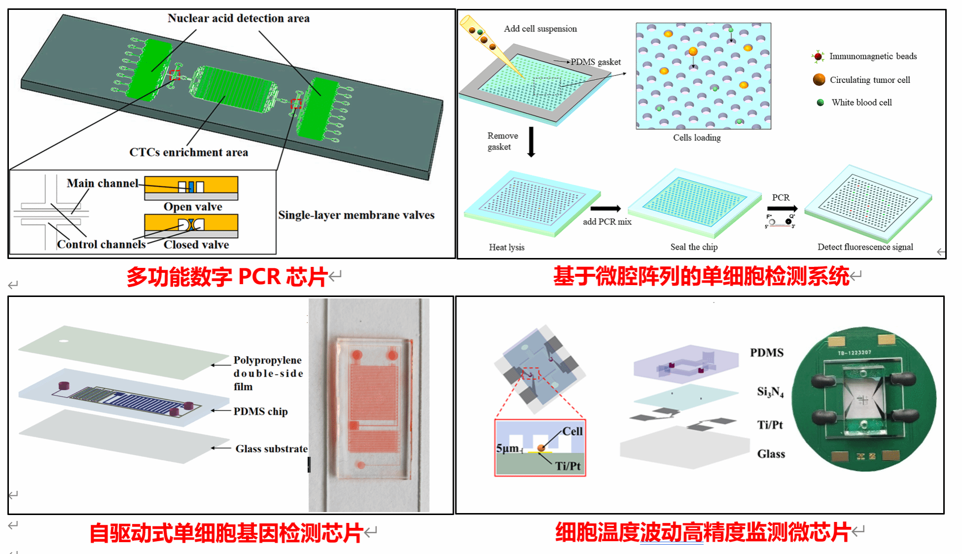 目前,癌症仍旧是全球死亡率极高的疾病之一。2020年,全世界约有1929万新增癌症病例,死于癌症的人群达到996万,而到2030年这个数字可能会超过1300[1]。癌症的早期诊断、原位癌的抑制扩散以及转移癌症的有效治疗是降低死亡率的关键[2]微纳生物传感器凭借其尺寸小、灵敏度高和检测快速等优点,在肿瘤标志物检测方面具有明显优势,有望提高癌症早期诊断和癌症复发监控能力。研究团队基于微纳加工技术自主研制了一系列肿瘤标志物(如循环肿瘤细胞、核酸、蛋白)、肿瘤单细胞、肿瘤细胞生理参数(温度、阻抗)高精度检测微纳生物传感器,开发了针对不同传感器信号的采集和处理电路系统,可为癌症诊断、治疗和预后等过程提供实用的分子检测系统,以实现癌症的早期诊断和癌症的个性化治疗。在本领域主流刊物Biosensors and BioelectronicsTalanta和生物化学与生物物理进展等发表学术论文5篇,申请发明专利6项,授权专利1项。