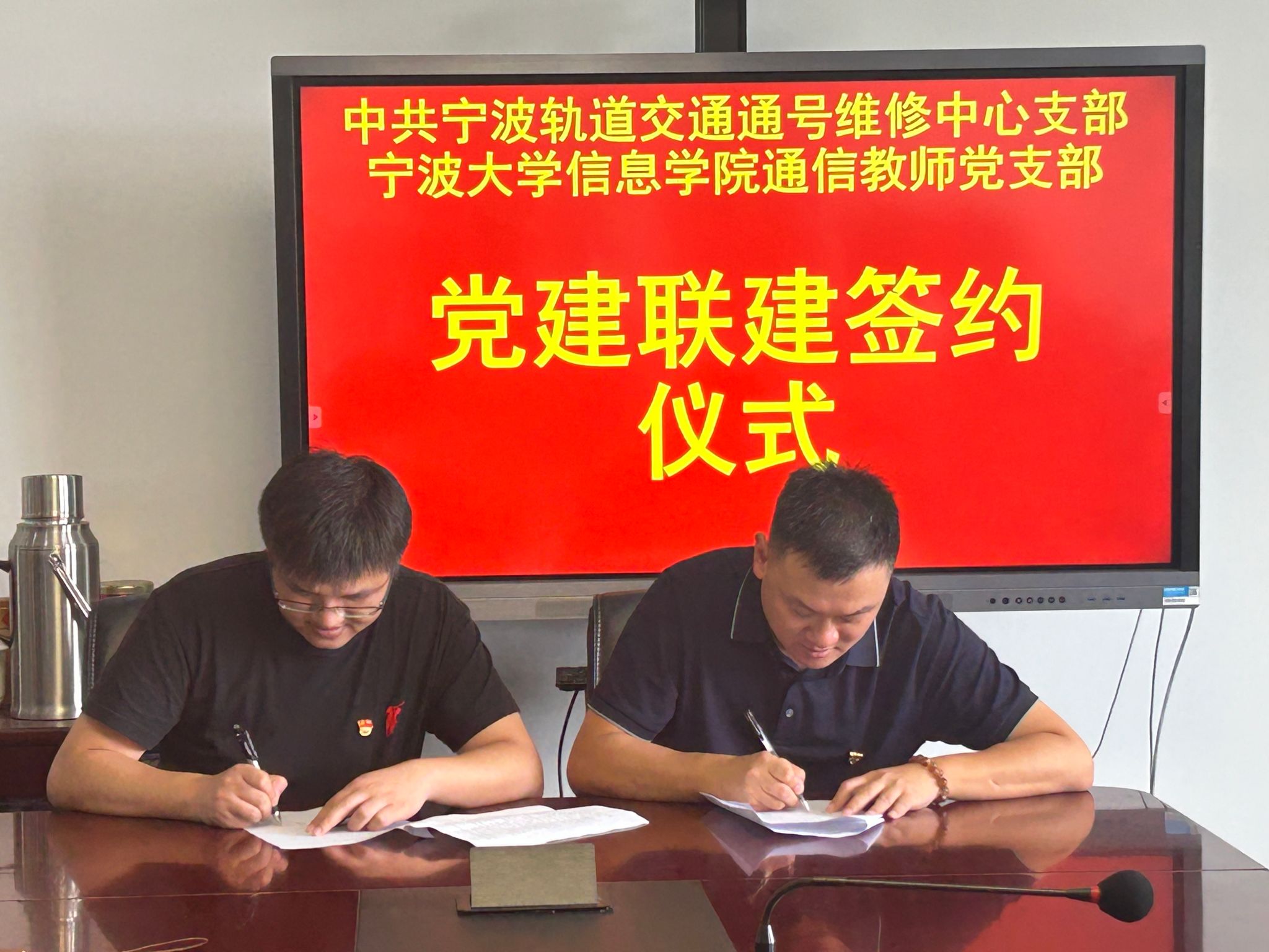 通信教师党支部和宁波市轨道交通集团有限公司智慧运营分公司通号维修中心党支部举行“校企”党建联建合作签约仪式。
