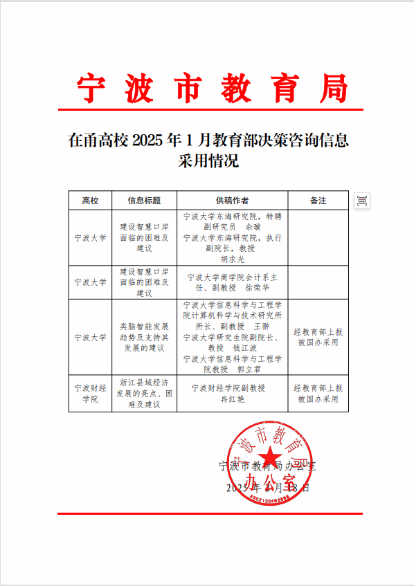 近日,宁波市教育局办公室通报2025年1月教育部决策咨询信息采用情况,亚洲色吧