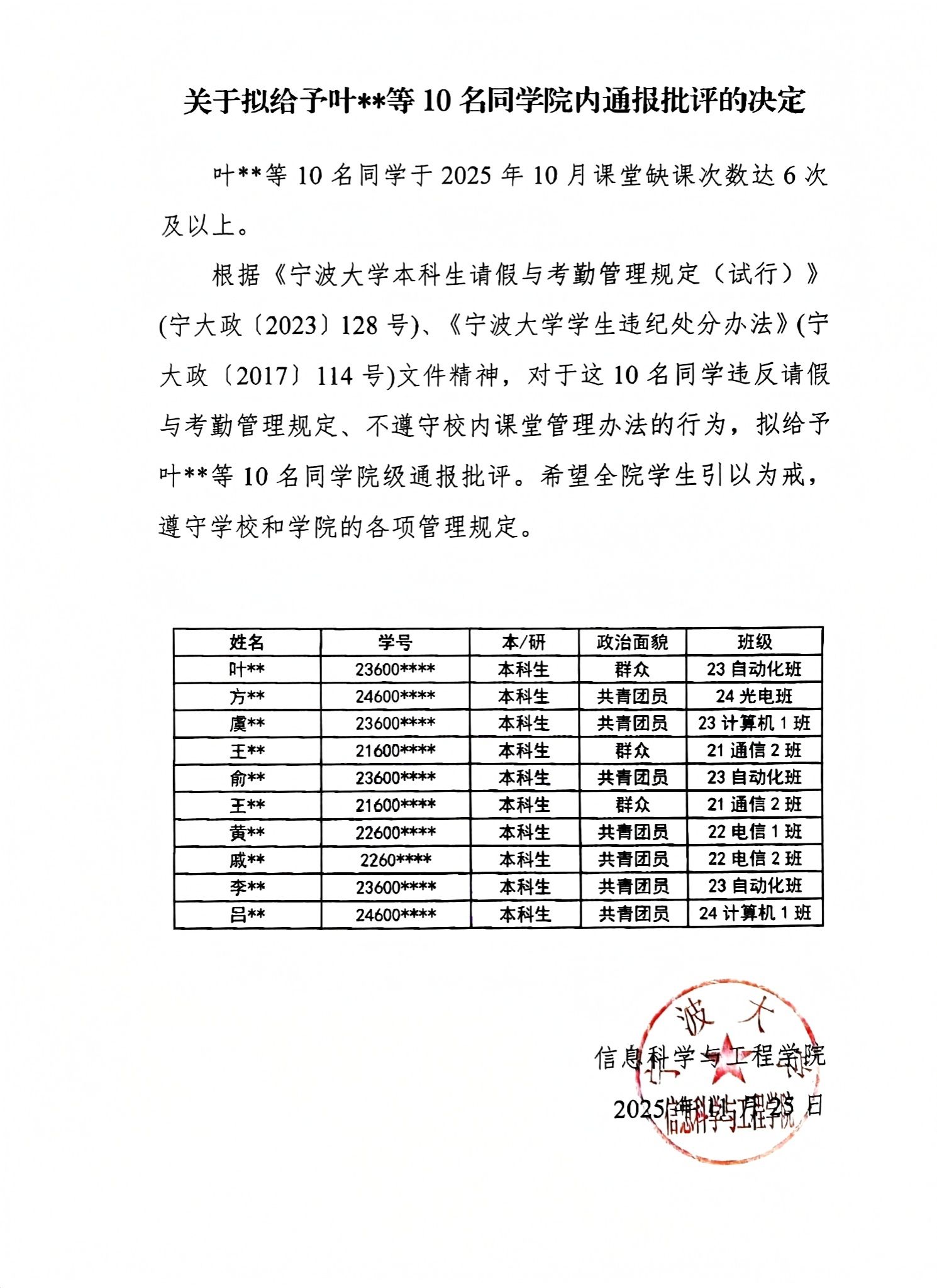 关于拟给予叶**等10名同亚洲色吧 内通报批评的决定